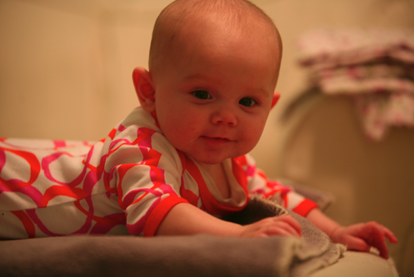 Its hard to believe that its been 4 months already. Everyday is a new adventure. Page has been talking so much, lots of little drool added into her conversations. I tend to have a burp rag in one hand at all times just trying to keep up with it. She is on the move constantly. It won’t be long now before she is crawling around. She has a feisty personality, so sweet, curious and active. We have our work cut out for us in the months ahead, but it is oh-so-fun!