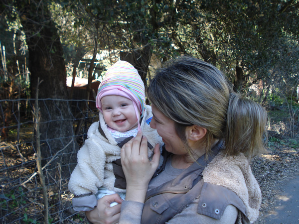 Brendan and I took our first full day from Page yesterday and left her with her amazing caregiver Nataliya. Nataliya spends 2-3 days a week with Page and she is so good with her. Yesterday we dropped Page off at Nataliya’s house while we ventured up to wine country for a Valentine’s Day outing with some friends. These are pictures Nataliya and her daughter took of Page, so cute!!! She was laughing at the chickens 🙂