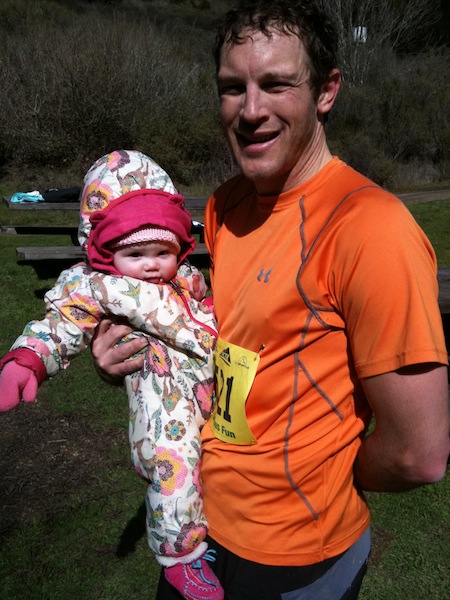 Page and I met Brendan up in the Oakland hills Saturday. It was super muddy after days of rain and freezing! But Brendan did great, finished the 50K race in 3rd place overall. Page and I did a side hike (time to upgrade the baby pack) and finished just as Dad was racing through the finish line. Oh, and his knees hurt a bit, but other than that doing great!
