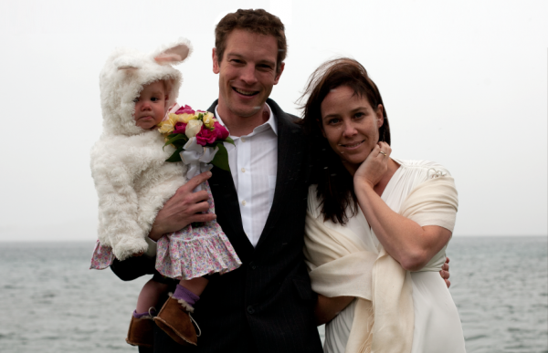 The weather was forecasted to be 65 degrees so we packed lightly. After the ceremony we ventured to Lake Tahoe to take some shots. As soon as we were all set up, it started to blizzard and it was freezing!! Poor little Pagie was such a trooper. I love this shot, the snowflakes and all…
