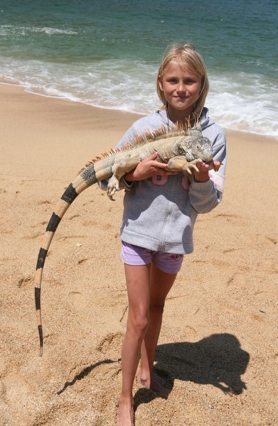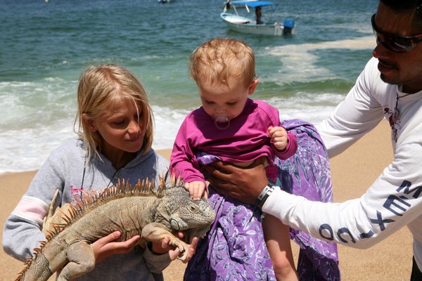 When we arrived at Yalapa, the girls posed with the resident iguana. Page tried to poke its eyes out, but the other two girls were sweet to the poor reptile.
