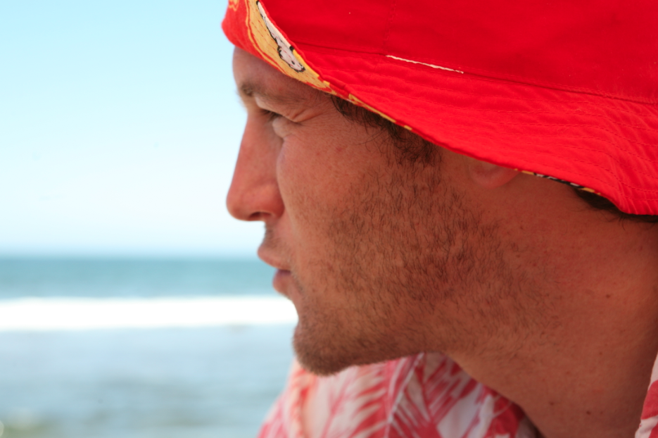 Page practicing to be a Patagonia model.