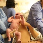 Sienna is so sweet. Her face was pretty swollen in the days after birth, but today her eyelashes popped out and they are so dark and curly, just like Grandma Belle’s. Her eyes are a beautiful color blue, not sure if the color will stay, but it sure is fun to get a good look when she manages to stay awake which is not very long at all. Here she is doing what she does best.