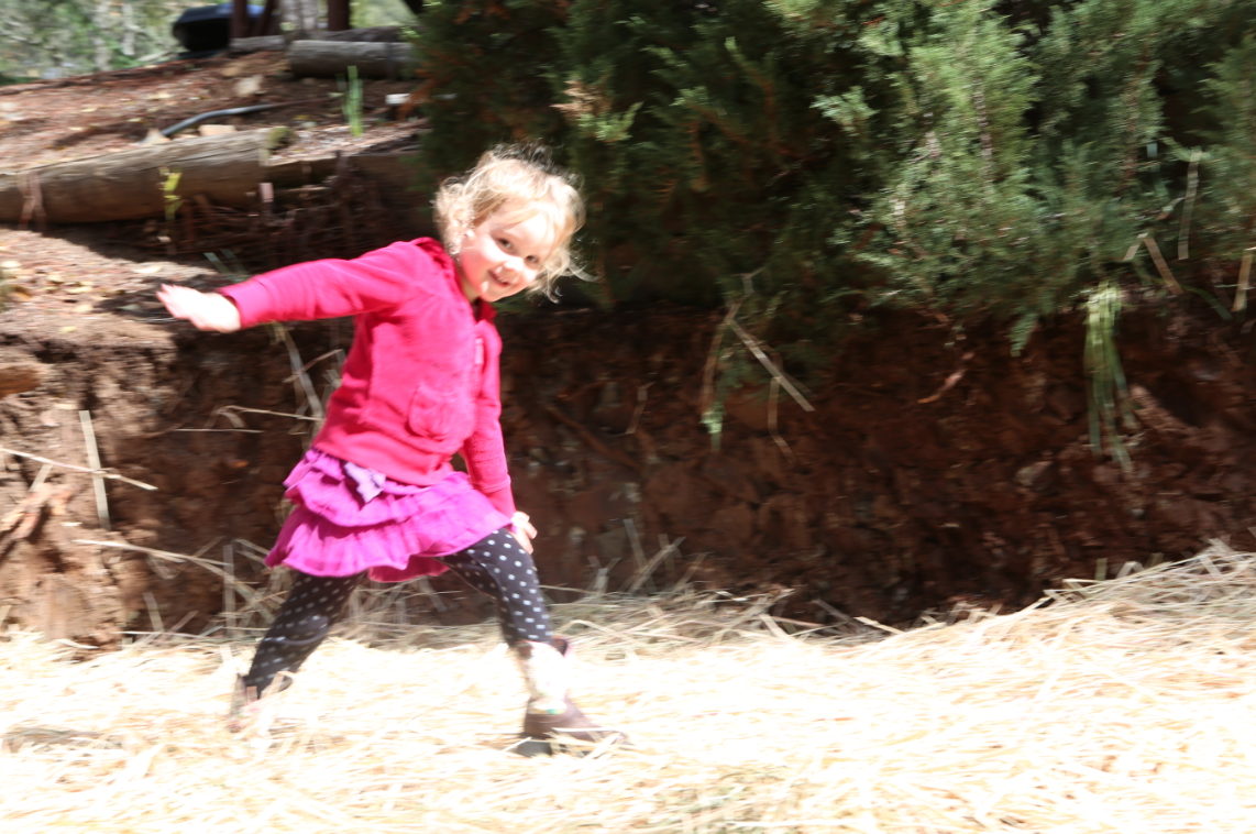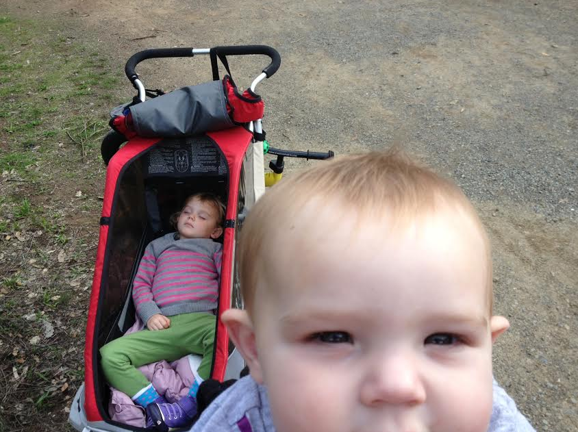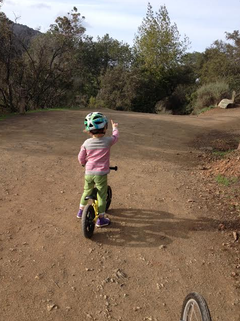 Maybe in Colorado people wouldn’t look at me funny for pushing a stroller uphill with Page sleeping inside and then also carrying Sienna in the Baby Bjorn. But here in Los Gatos, they look at me funny… It only lasted about 10 minutes and Page woke up ready to ride her bike which was the original goal. She is so fun to watch cruise up and down the trails on her Strider. “Which way do you want to go Page?” “Left!”