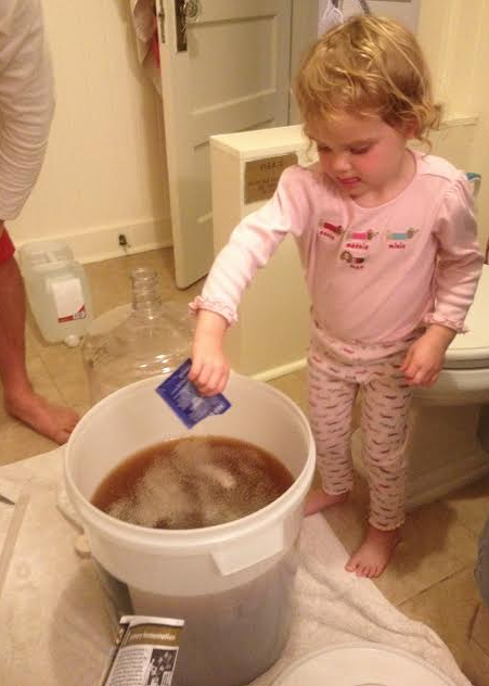 We are testing our first batch of wine before we make the big commitment of planting a bunch of vines. Brendan bought me a wine making kit for Valentine’s Day… So cute. I came home on V-day and Page rushed out to meet me at the car. “Mom, Mom, hearts, hearts!” Page and Brendan had laid a trail of hearts that led from the car to the downstairs bathroom where a ton of wine making equipment was awaiting. We dove into the science experiment last night and produced our first batch of Pinot Grigio. In a couple months we will find out how well we fared.