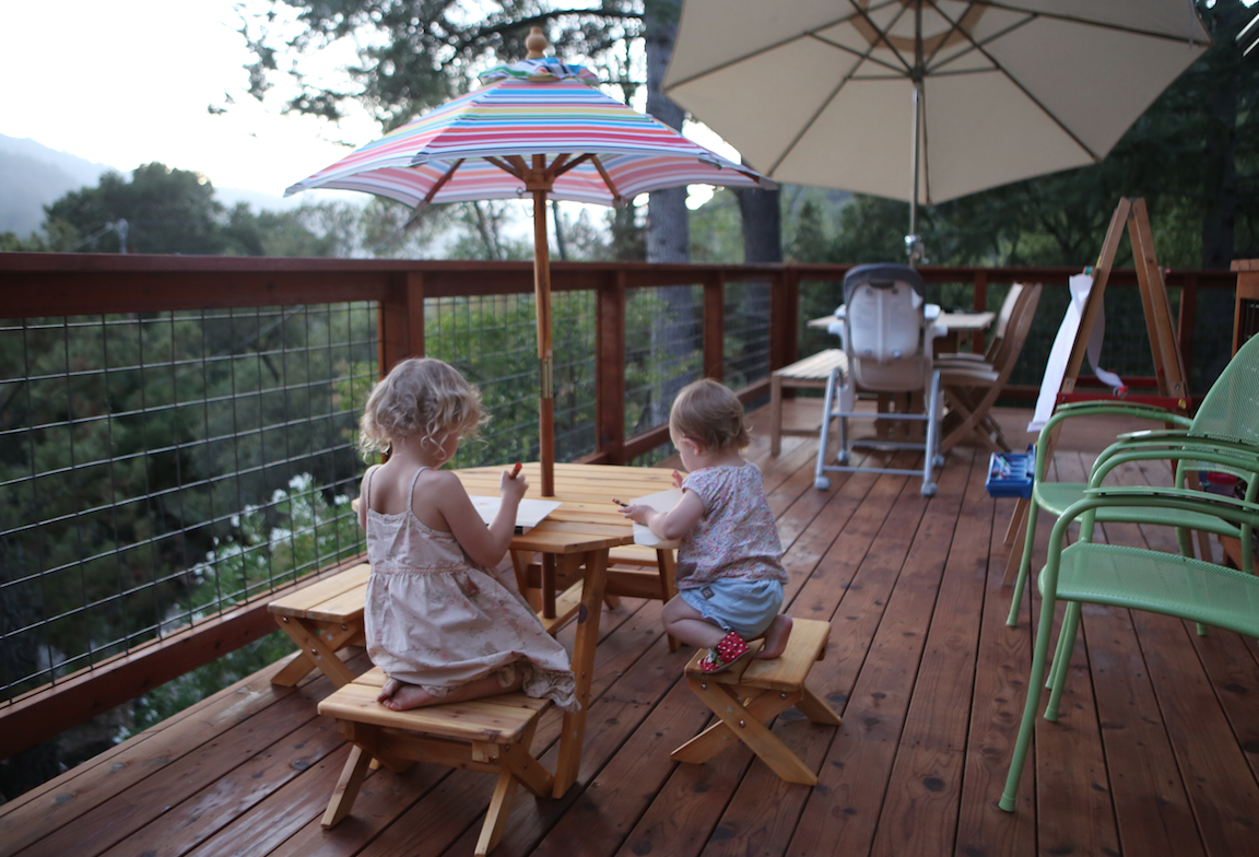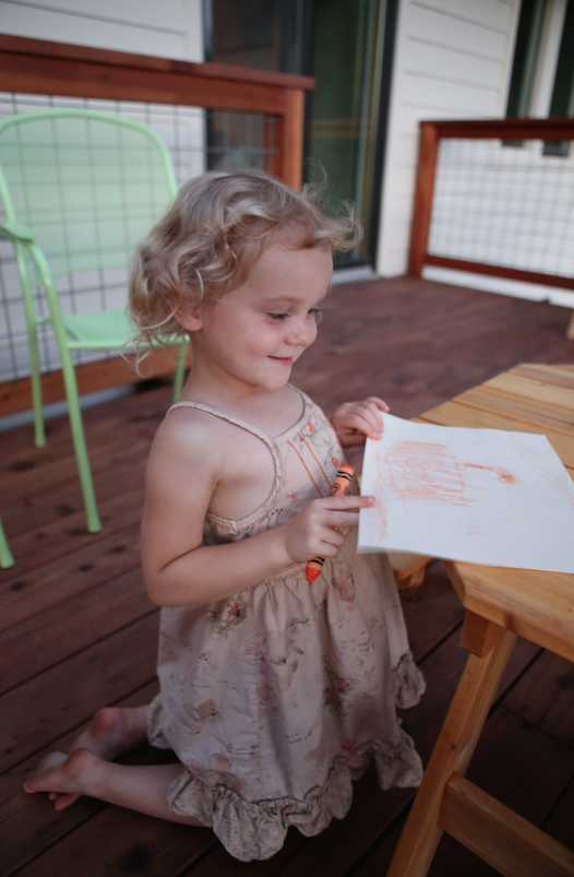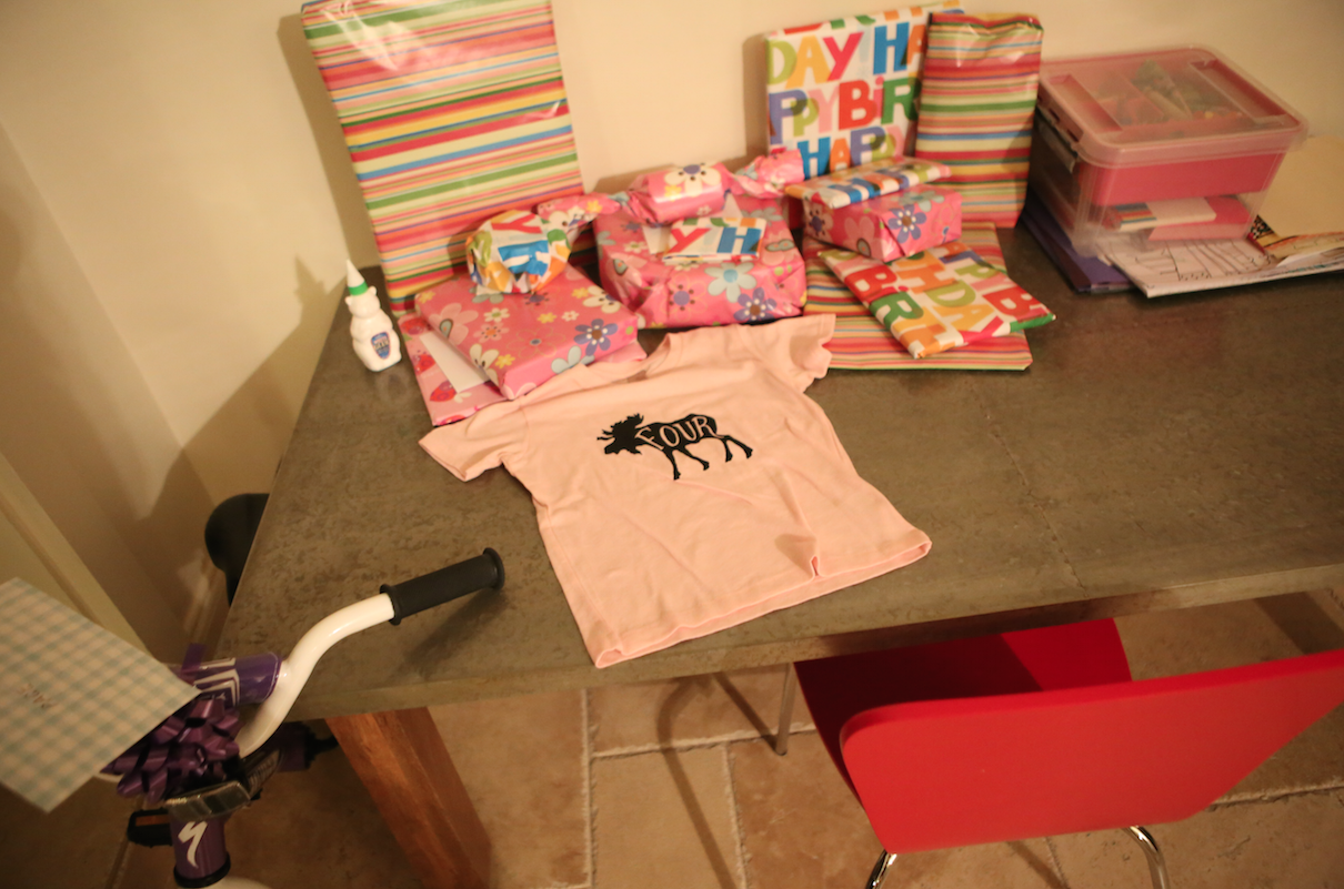 Page woke up so surprised to see her brand new pedal bike! She loved all her other presents, too… Aussie books, my pretty pony, lots of art supplies and a “four” t-shirt in the tradition of Grandma Anne, and her trampoline. We started off the day taking the new bike for a spin at the just finished primary school (where Page will go next year to start Kindie). She did amazing and was riding by herself after a couple laps. We are still working on stopping and getting off. Sienna tried our her “new” Stryder but it was still a little too big. We went home and got ready for the party. Page’s buddies came by and we did scavenger hunts, trampoline time, dance parties, so much fun.